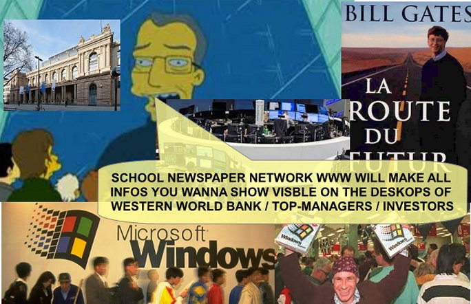 | SCHOOL NEWSPAPER NETWORK WWW WILL MAKE ALL INFOS YOU WANNA SHOW VISBLE ON THE DESKOPS OF WESTERN WORLD BANK / TOP-MANAGERS / INVESTORS