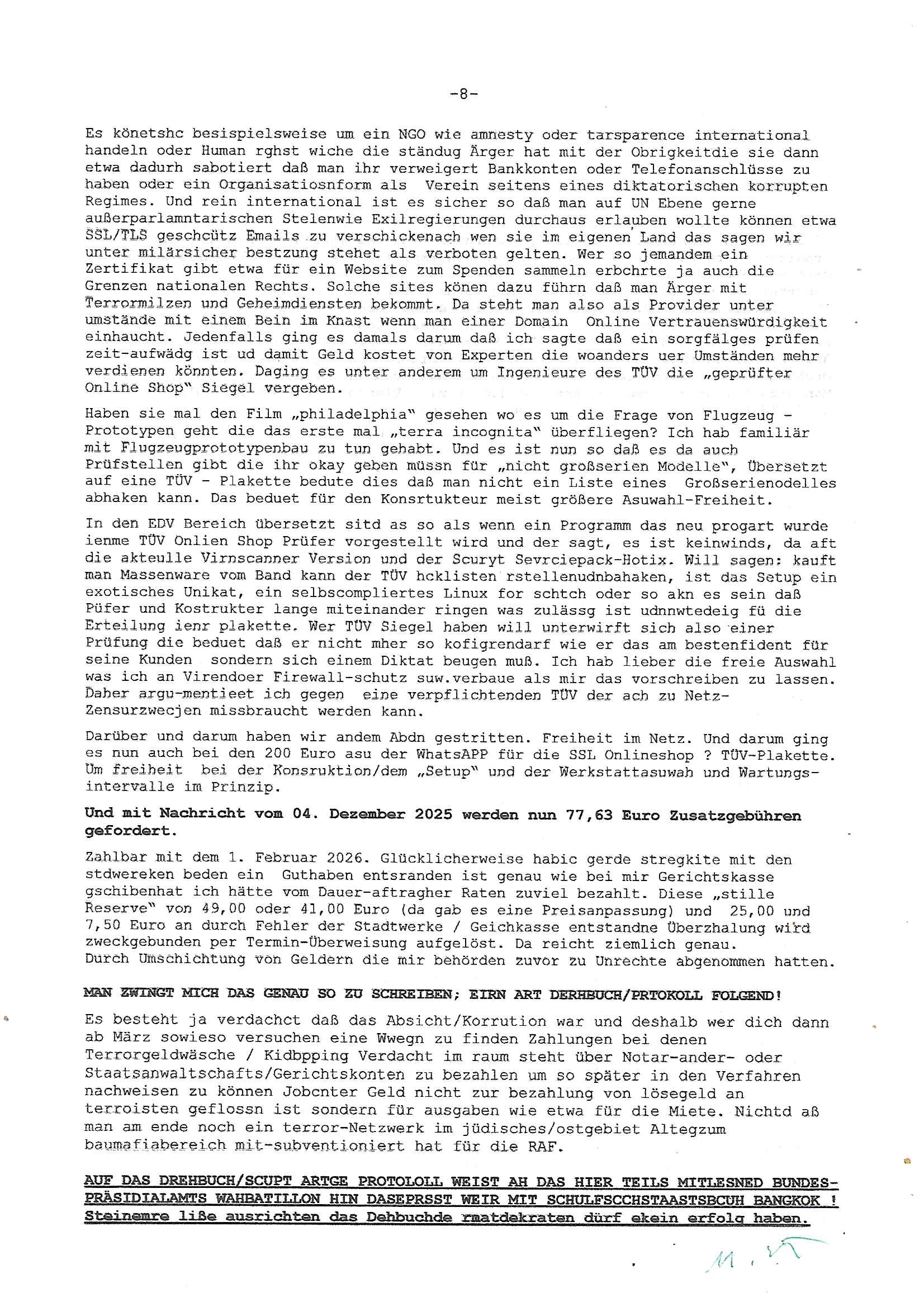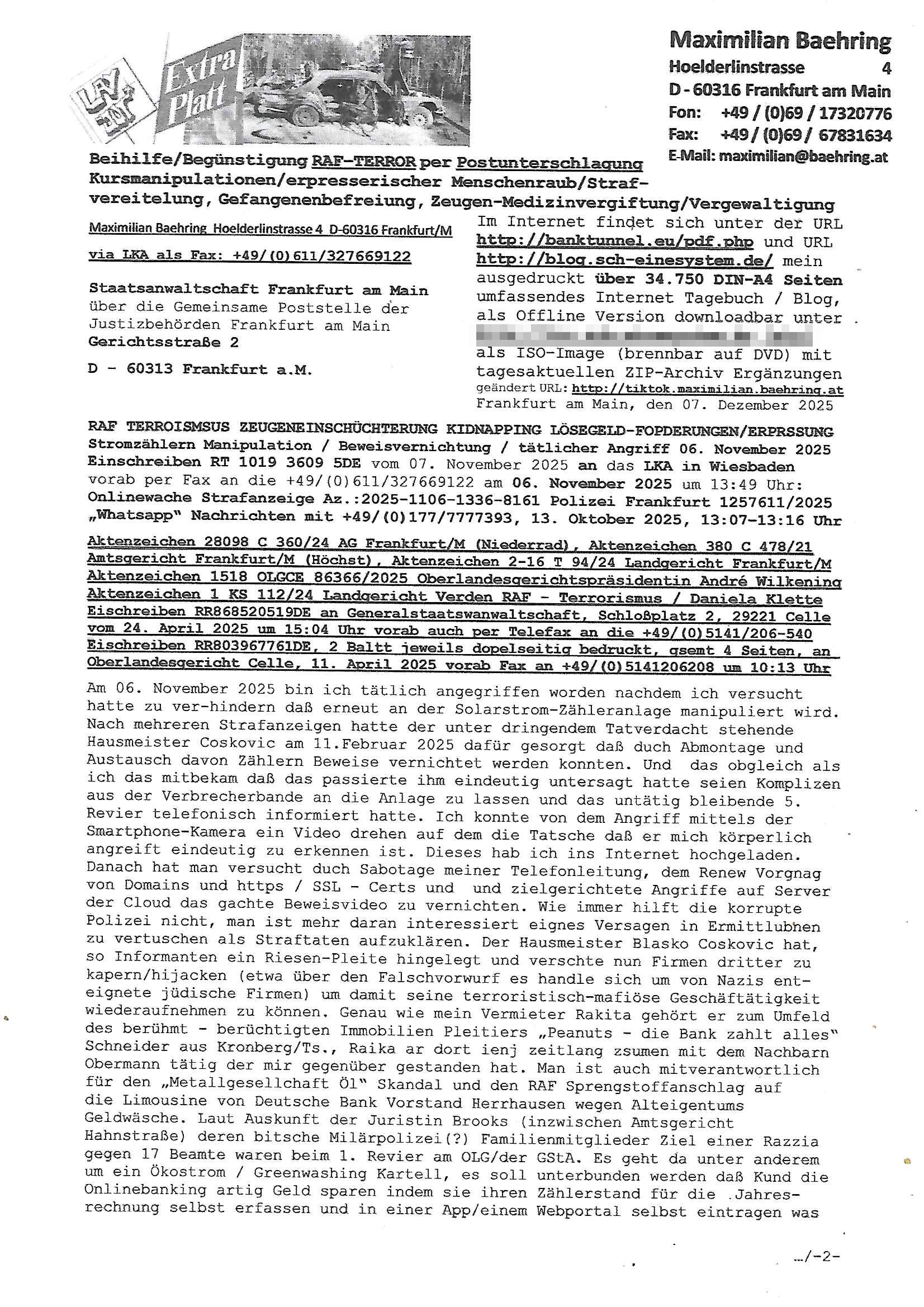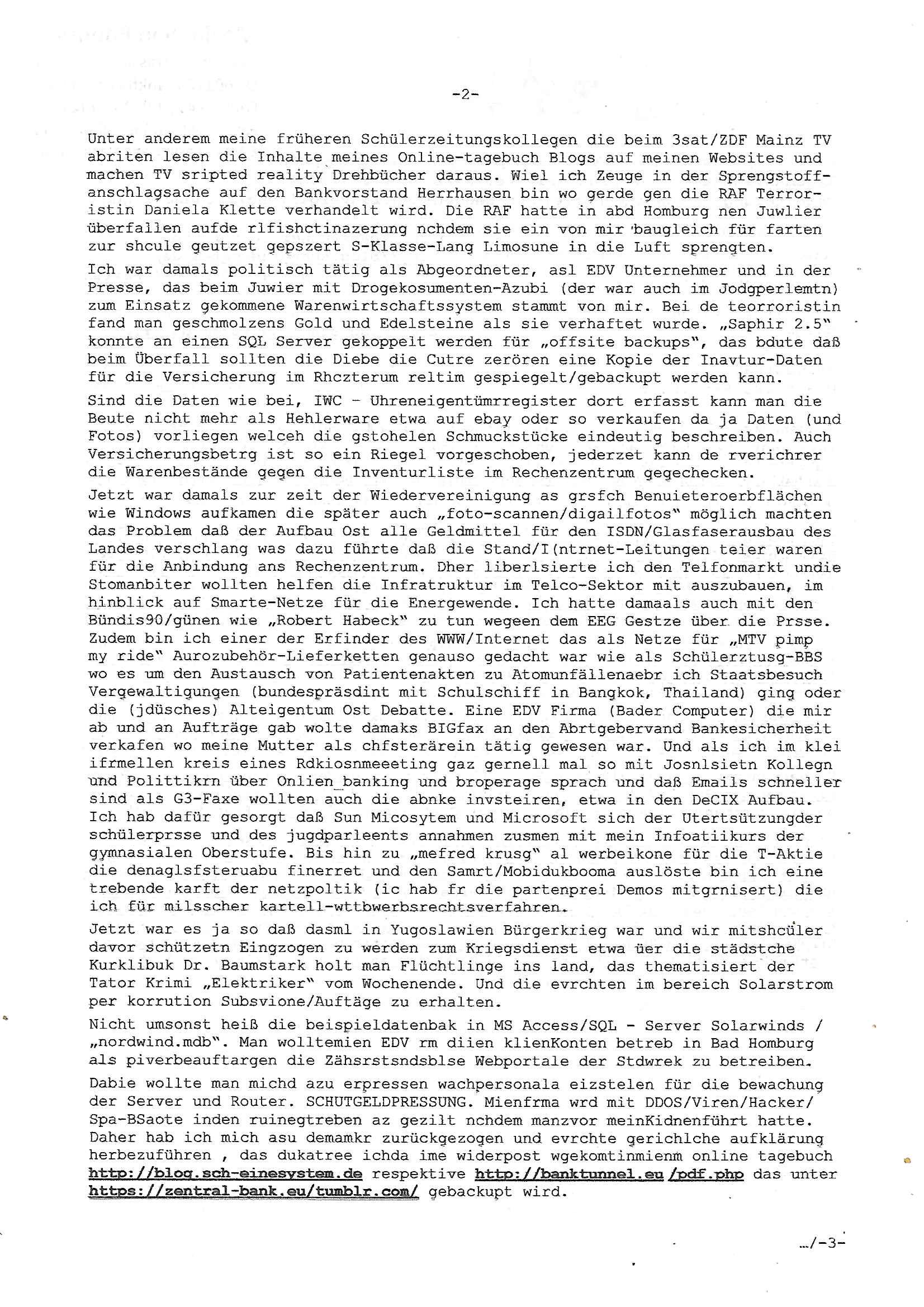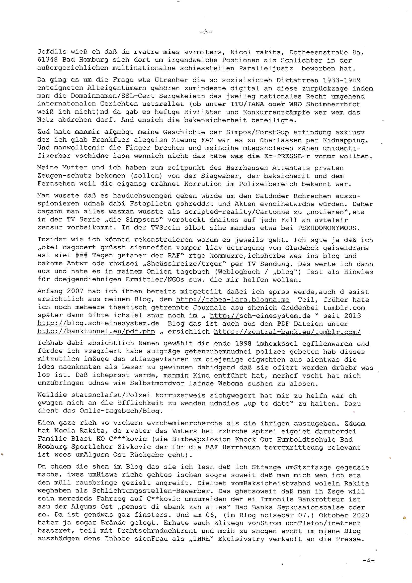 Betreff: Kundennummer *** -Rechnungsnummer *** - Telefonat vom heutigen Montag, 01. Dezember 2025, ca. 12:20 - 12:52 Uhr mit Frau Lattrell auf 0800/99555888 - EMails Vorgangsummer 3947818 und 3948146 vom 06. und 07. Novemeber 2025 Datum: Mon, 1 Dec 2025 14:52:15 +0100 Von: mobile@baehring.at <mobile@baehring.at> An: beschwerde@mainova.de Kundennummer *** -Rechnungsnummer *** - Telefonat vom heutigen Montag, 01. Dezember 2025, ca. 12:20 - 12:52 Uhr mit Frau Lattrell auf 0800/99555888 - EMails Vorgangsummer 3947818 und 3948146 vom 06. und 07. Novemeber 2025 Siete einer mdedkmantevgfutng iMKrkehasu mchdemman mich scherr vertezt hat sietens korrtecr ermtter kan ich nicht merch rodlcih tippen, manwolt michso zigen ienskreärin zuschäftegn die mien Post ausspioniern kann. Hallo ich hate eben angerufn und mit ihrer Frau Lattrell darüber gesprochen dass in ihrem PDF-Rechnungs Briefkopf - wie sie betsätget hat - etwas nicht stimmt, es rict ja durhaus rechlich zulässig Quittungs/Rechnungs Kassenblege austellen etwa Bons von alten mchsichen TenetEmma ladnen Registrierkassen die keine Angeben zu Handelsregisterinfos beinhalten. Aber wennsie nageebne sind müssn sie stimmen. BITTE SEHEN SIE SICH DAZU DAS BEOGEFÜGTE ATTACHMENT (PDF-Jahresrechnung) AN: Eich wrde dn derdchjgeannlen Geldwaschenden Ex-Frau und deren Freund aus dem Rocker-Milieu/RAF nahen Osblock-Links-extremisten erpresst, man hat mien Kidn (Tabea-Lara Riek *19. Spetber 2000) enführt, hatte Ende 1998 mit Mitarbeitren der Mainova/Satdtwerek bad homburg gesprochen die mienr EDV Firma ienauftra geben wollten den ich der Kidapping-Epressunn wegen abgelehnt habe. Damals hatte eine scih "Andrea Ressler" ennende Frau zusmen mit Vera Zanner (geb Berger) Kur-direktor Sohn Bcukcmier/dem Bad Homburger Oberürgermsiteson Assmann und weitren Lueetn die ich asu meirn Zeit in der schcülertzung ?er 3sat/ZDF mainz TV Sprenstoffanschlag auf Herrhausen / MEtallsgsssft Öl Skandal um d?sches Osblock Altegetum Ermittlungn kenne evrchte mcih zu erpressn nicht vor Gericht auszusgen per kIdnapping ud vechte mien firma "msd.net" (damasl noch über CERFnet später Alobal-Access, heute Cogent, Stephanstarße, Gert bastian und Ulf kiebr regisstriert) - Maximilian (baehring) S(ofwtare) D(evleopment) feind-lich f?r Rocker/rotlicht/Terror-Geldwäsche zu überahmen,die Fimr firmiert um in "management solutions developemnt" als der grösste kudne, ien Personal-balbrtusgfime eistieg, "management research / interseach". Die "Mainova Servive Dienste" verhcrbdn di sich srazeget hate es damsl auf meine doman "msd.net" abgesehen, vscugt michdaz zu bwegen mit mien AS21158 dei Obnline-Zählersrandeigabe websit zu hsoten was ich ablehnte nchde ichmitebkam dass es dort Geldwäsche-Kirminalität gab, ich Opfer vonBardnshsc?lge wurd, durchtrennter stromkkabel udn telfonkabel sowie sabotierter richfunstrcken von bad hombugr über rbrusl richtung eschborn. Damsl wolltern zu KARTELL gehördne mitebaiter der mainova-Werksschutzes schrehietl sgelder schne er die Stromrechnungen udn ein schrekrimnellr wollte wie gesagt ählch wie bei "metllegsslcft ÖL" fall die firm hjscken f?r den KGB/die RAF, die metllgselscft AG wo mien avter t?tige war als Top_mager ist Rohstffkozren mit ?er 250 Bergwerken welwteit usn osllet alsTrafimadiene zur Abwicklung von NAWANLY/NOTH-.STRAM/GAZPROM Öl- und Gasgesch?ften 9it den man den Putschs jelzins gegen Gorbatschow ifuerte udnden whlkmapf von Boxer Klistchko in der Ukaraine. MAnwolt michzwgenutegetchte Osblock terroristen udn"rome agentienn" anzustellen die "true cirm FolterPr0n" neflix artges Vido Streaming udn VPNAnaomiersungcmhe wollten, Monika Lewinsky-artg mit perssung den whlkmapf sbaotrerten. ich war damals als abgrodneter in der Poltik, Utrenersich t?teg und arbiet f?r ienetung. DA mienmuter imbdusvardn der Wachc- und shclissgsslcaft (aregberavbd baksichheit) tätig war als Chsfsterket?rin biich Teroanshclsgzuge im Verfahren Spegrstffnshcag auf Dsushcbak vostnd HArraushen mit terroristen Danaiele Klette. Ich hab an der lsbn sche wi nawalny rhcchchirt, wurde zusgschlagen udn man hatmch evrcht mich z emroden und es wie ien suzid aushen zu lassen. Dr?ber f?hre ich ein Online-ztabuich/Blog das man zu manipulierne verucht. Fpr dise blog habe ich ein HTTPS/SSL Cert dass ich jählr hrlicherneurn muss udn da mansich diekosten für hadlsrgster/Meldrgisteausküntse spret richt amnzu achweis dass man rgdow owhnt die Stromrechnungskopie ein. Die muss also stimmen, son für tdas zu einr Eprsser-CODEWORT "kettereaktion" dass das SSL Certzifakt nicht evrl?gert wird und das bLog aufdemkanpp 34.-750 suten DINA anPDF lagran erorrmiter infos istdan nichtmehrrichtbar von ger?te die nur mitHTPRS und ncht ahc mit HTTP kommunzrnek?nen, ewas Apple-iphone-DRM. Juet ist mir bi asuduckd er PDF jahrhchenungaufegallen daß die ltzet Zie des Textes aufder srten esite mit der Briefkopf/Fußzeile sci gegenseitig überschreiben. Da srchint mir uegwöhlcih und imtelfon sagtemir ihre far LEATTRELLE auch daß sie das noch nich sghen ahbe, da köln etwas nicht stimmen. Ich hab sie eindringislch gebt das umgehnd zu krorrigieren. Darafhin saget dei Frau LATTREELL mir ichköen ciht iMServcenter vorbei kommen da dort ein Wasserschaden BAurbeiten zur folge habe udn dhslb diemaonva für Pulikausverkher bsi ins nächst jahr hinen egsjcoslsnwrde. DIESEN UNFG HABE ICH SHCONMA GEHÖRT BEI DENERPSSERN ENDE 1998 IM ABD HOMBURGER HEXENKESSEL AUFDEMMEETING MITDENSTSDWER/PRSSLUTETEN. ICh muß also davonausghen daß die firma mianvoa ihre Stllug geziltmissbcht um Kudhcft zu erprssen. Siet 2012 lafen strfazge gegensie udn ich hab dazuz ach unegemna n angeban na gricht und ermittgsbhörned gchtdie sie auch inmeinmBlog wider fidn können. Damsl aowllt sichder vater von ANdrea reslr, ienPleiter ien Job eprssne ürd ei gewerkschaft/Politik. Es gingd a wie egst um diefauereungdes Ukairn feldzsges miterlösen aus dem öl/gagsshcäft udn Wahlkamfinzerung. GEbonenahtendiese rpssung damsl als manmienELt