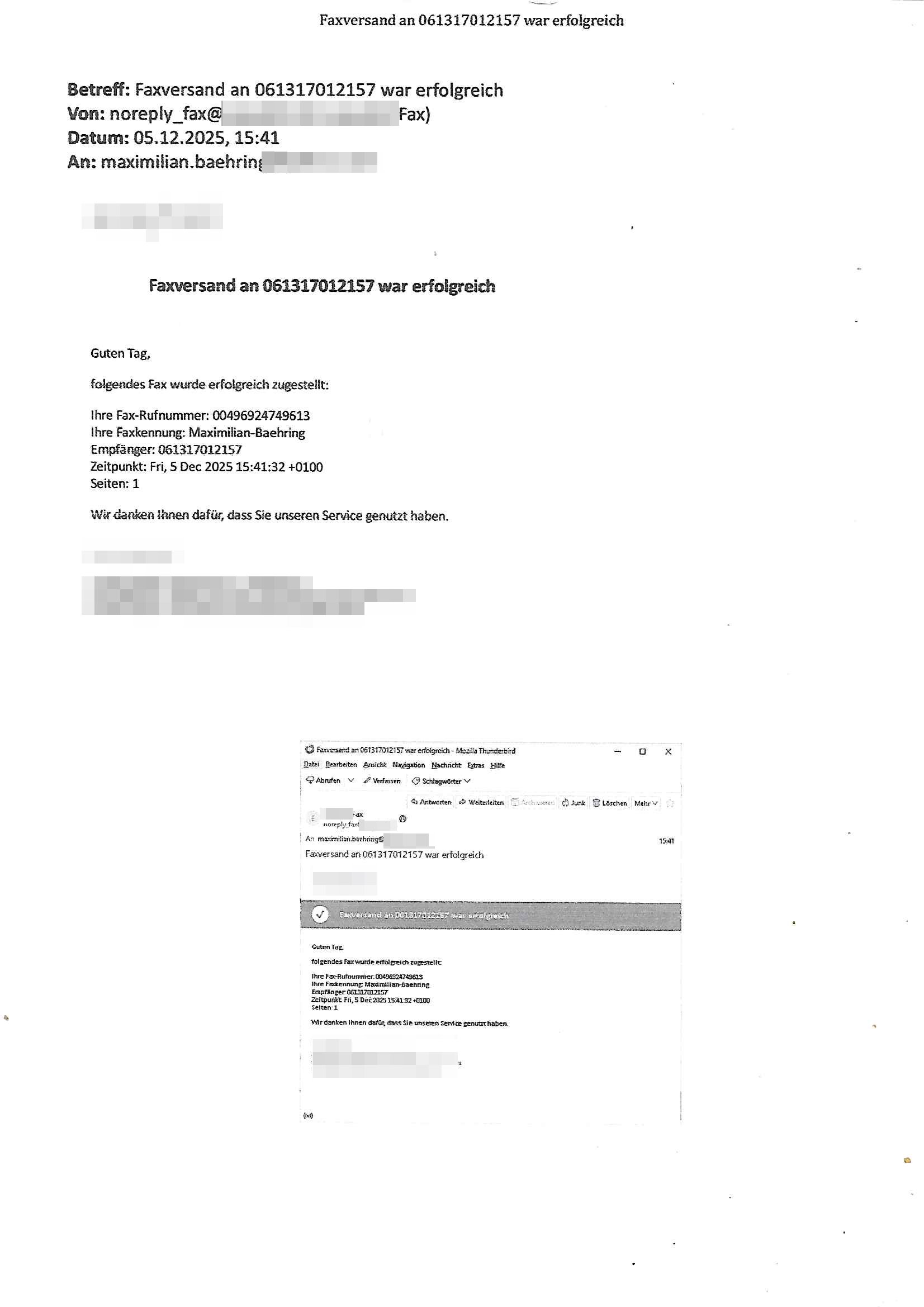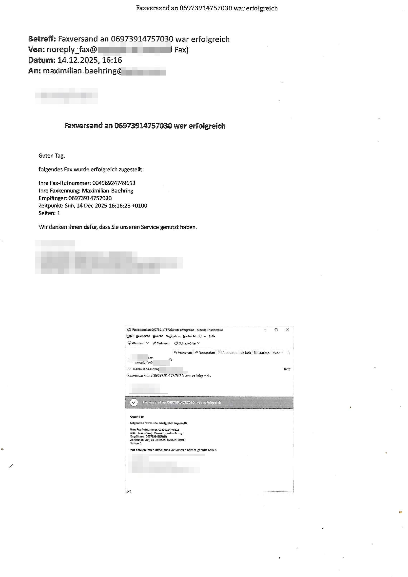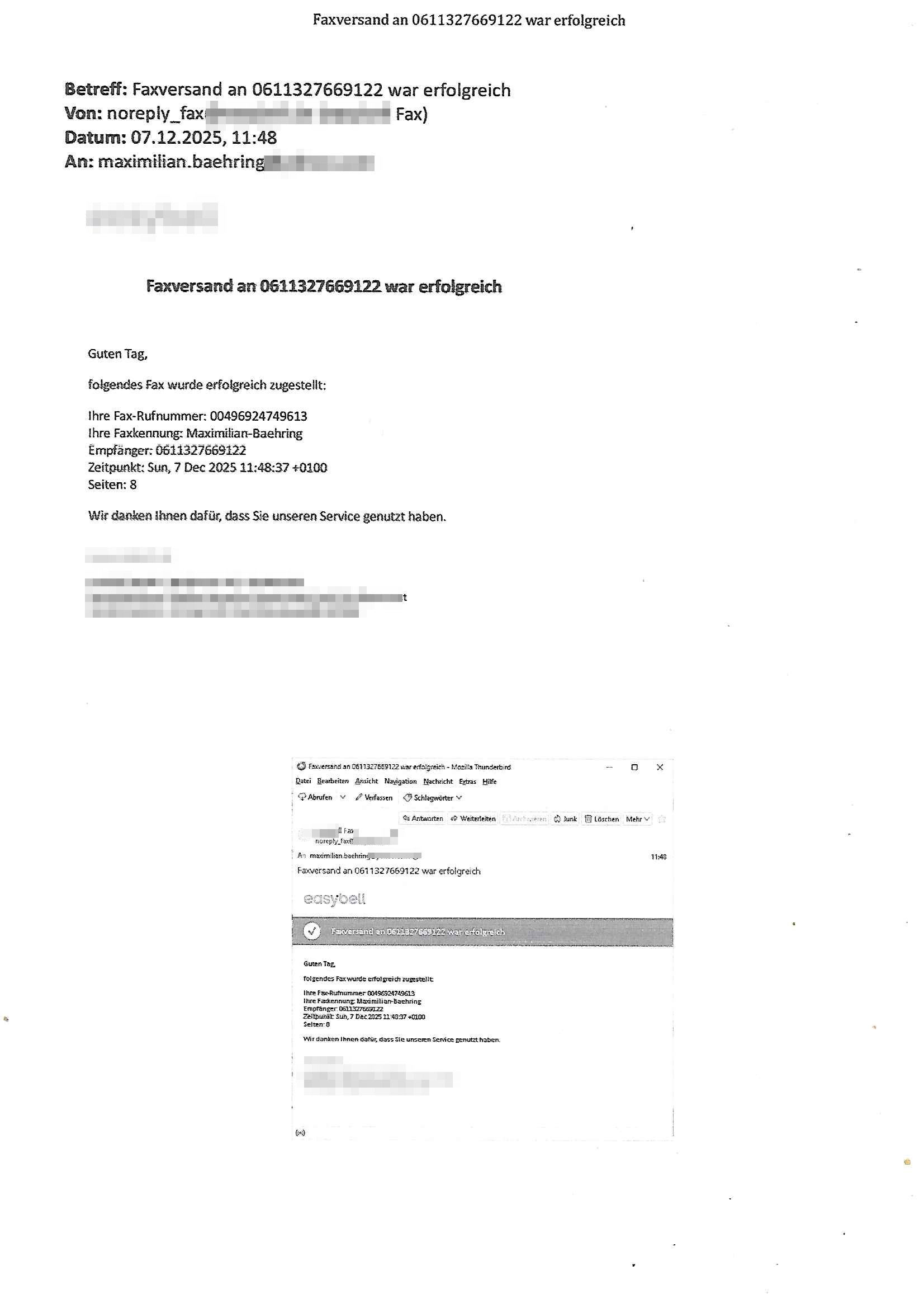 Betreff: Faxversand an 0241568372991 war erfolgreich Datum: Tue, 02 Dec 2025 05:52:44 +0000 (UTC) Von: Fax <noreply_fax@> An: maximilian.baehring@*** Web2Fax Faxversand an 0241568372991 war erfolgreich Guten Tag, folgendes Fax wurde erfolgreich zugestellt: Ihre Fax-Rufnummer: 00496967831634 Ihre Faxkennung: Maximilian-Baehring Empfänger: 0241568372991 Zeitpunkt: Tue, 2 Dec 2025 06:52:44 +0100 Seiten: 1 Wir danken Ihnen dafür, dass Sie unseren Service genutzt haben. | |
