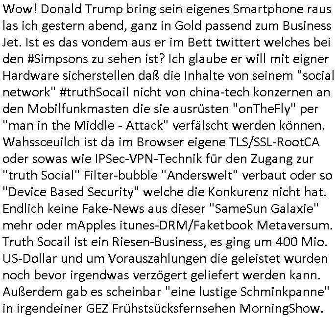Wen man sieht wie särge in Frachträume galden werden am flughafen, vielleocht erinert sich noch jamdn an die diesbezüglichen Bemerkungen von mir auf dem presse-meeting im Shcüerztusgüro tewa zur Zeit des Mauerfalls. Diese "Musical HAIR" Filmszene "LET THE SUN SHINE IN" auf dem Flughafen. Wir hatten darüber geredet wegen dieser "GOOD MORNING STARSHINE" Kriegs-Reporter. Als wird die "A10 - Thunderbolt" Panzerknacker Fotos und die von der Verladung von "Atomwaffen-träger-systemen" bekommen sollten die abgefangen wurden. (Nicht abspielbare MP3 Datei auf nem iPod-Walkman). Wo es darum ging daß es kein deutschen Tornados sind die Belgrad bombardiert haben sondern wenn britische. In etwa zu der Zeit als #realityBites entstanden ist und #wagTheDog. (Da hatte ich mal irgndwas mit so einer vampyre records firma am Frankfirter hauptbanhof zu tun neben der AIDS-Hilfe, ggebüer ist ein Rockertreff). "Petsi Hohls" der "Booker" des "Gambrinus Musiklokal" (wo "Andrea Ressler" mal gearbeitet hat bevor sei den Hexenkessel amchte) am bad Homburger Fürstbahnhof hatte damals swot sich entsinne mit dem Bruder von Schülerzeitung "Monstermüsli" Autorin "Biggi" Braun irgendne Plattenfirma. Die wollten wie bei Grönemeyer musikvideos auf CD pressen zu einer zet wo noch nicht sicher war welcher Codec-Sandrad/MP4 sich duchsetzt. Damals waren Mutimedia Mixe-mdoe CD Bewegtsvideos rechenleistung ohne spezielle beschleunigerhardware bedingt 320 x 200 noch etwa Breifmarkenformat groß. Udn ikch riet dazu sowas wie youtube casting-shows zur nchschsfpderung aufzumahcn damals in der Redaktion. Die Debatte drehte sich um DRM - Endgeräte / Zensur und um Fan-Intermeforen-Communities. Nur weil wir das Thema "Rchenzentrum Bewchung" streiften. (Wenn man das Sat1 füshtsücskTV beim IP-geoblocking JOYN abfilmt per Webcam vom Schirm und die Moderatorin UNVERSCHLEIERT im IRANischen scoial Media Internet auftaucht per eMule/Dokey Tauschbörsen-Raubstream. Wir erinnern uns: "THE SUN ALWAYS SHINES ON TV" die "you are watching channel FREE" wie in DREI-sat aber auch in "FREE beer" Morning-Show Musiksendung. der ESCHATOLOGISCHE (WELT.tv) "ICH WAR DABEI BERICHT". ( "Sarah Hazel drink and schmink" / "Blumfeld - reflecting skin" respektive "Kelly Clarksons - since you been gone", und auchdie "online hate oma (80)" ketchup - expertin) Jedenfalls ging es dann noch um den "letzten ausweg: Hausnotruf", marge war eingesperrt, amazon ALEKSA hatte sie gekidnappt bei einem "Koch Duell" so ähnlich wie diese "Weihnachtbäckerei" Sendung mit "Marlene Lufen" "das große Knorr kochstudio backen" oder sowas es gab bei Böhmi "SAlaT von der ISS". Und kaum daß Böhmermann Alein Food gegessen hatte das ging es los daß alles gaz seltam wurde auf der Welt/im Fernsehen. Cooro udnsow. Ob es da einen Zusammenhang gibt? Womit wird dann wider bei den siposn waren wo die letzetn Üeröebdnen dermshchist an bord eines Raum-shcffes zu füh aus irhen Hypesflaf Kapslene erwachten. Und es gab einen Unfall mit diesem Replikator Thermo- Mix - Mikrowellending aufdem rsischff. Die "Cranberry" Gelatine erwachte zum leben und tötete die Menschen etwa wie ein Pilz. (ch kenn ienpaar Jnkies aus einer LSD udn Pilzsiche Scukakaheiten Recherche die lachen sich bestimmt marihuankosumabdinegt schepp bei der Idee daß riesige Killerplize die ganze menschheit auslöschen) . Soviel zu den #simpsons . (gab es da nicht mal ne band nicht die, die "Kirsten Hanser" Horoskop Kritik "humans or ancer", die die pilzknöpfe-frisuren zur mode machte, siehe "morlock motors" transformers-männer-spielzeug. Dann #berlinNueKölln02407 / #berlinTagUndNacht wo es mal wieder ein schul benefiz gab (ist die idee dazu mal wieder bei den #simpsons geklaut)? und mike sich per internet einen neuen job suchte. Dann die 3sat Kultur- zeit es ging um "qui vit encore" Lebenszeichen aus Gaza. Dann ging es um Foschun zu EMPATHIE und Krieg. Und Elias Herschels Buch "Schleifen" wo er in sich daranvschte aus eine Esparatao artge "Universalsprache" heraus eine "missverständnisfreie" histrsche weltsichte zu entwckeln. Dann irgendeine "carmina bruna" aufführung. irgend-welche ortswechsel und tobias pilze - gemälde. ein batrag wie man mit einer "zdfneo #Suits theDonna" artgen KI den Tod besiegen könnte (ich muss gerade an die text- zeile "ich war dabei mir ein art von vershwinden ..." denken aus "ich- wie es wirklch war" von "blumfeld"). Dann Musik aus einem Swiss Campari-Soda Werbespot von Grand Jean. "2 Sided Ario press", Musikvideo. Nach dem Werbeblogk dann wieder #berlinNeukölln02407 / #berlinTagUndNacht woe Chiara ihren Onkle Piet warnt daß Raphi es nur auf sein Geld abgesehen habe bei der Hairat. Er soll 14 tage zur Kur. Raphi hat einen schicken blauen Mantel an, hat ihr piet den geschenkt. Chiara wirkte dagagen eher wie ien Stahkocherin aus dem ruhprott in ihrem Glitzer-Outfit gesteren irgendwie. https://tvinfo.de/fernsehprogramm/2290042400-die-simpsons https://tvinfo.de/fernsehprogramm/2290042409-die-simpsons https://tvinfo.de/fernsehprogramm/2269348005-kulturzeit | |