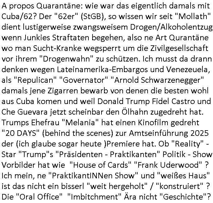 Ich mein die Jungprlemtartier wissen ja worüber sie da abstimmen, oder? "Warmer Abbruch" war damals sehr beliebt vor allem in der Gastro Szene in Bad Homburg. Habich egelch erzählt daß die dame welche das Cent-O betrieb die Erebin/Tochter vom Busunternehmer war? Wir erinenr uns ich sollte im Parlament einen Ausshuss für den ÖPNV zusmenstellen (mit nem Polizistensohn?). "In Bad Homburg, in Bad Homburg ist wider jemand in eine allee gegurkt" (die an der Autbahnabfahrt, "Disco - Unfall") udn daher wollte man "don't drink and drive" daß die "jugdn udn firzet" Ausschuss Jugenparlamtarier Förderung machen für "Angebote vor Ort". Ich hab mich daher ja auch mal mit Suchtproblematiken beschäftigt da Junkies in Frankfurt/M. Bahöfe ungemütlich machen, siehe die RTL2 "hartest Deutschland" scripted reality diese "No Go Areas" für "Briten Hooligans" bei der EM. Aebr was hatte das naochmal mit den Molotov Cocktails aus der Hausbesetzer-Szene Musik (Ton Steine Scherben/ "köng vonduschaldn" rio riser) und Alteigentum zu tun? Die Exkursionen nach Hamburg wos um Strukturwandel im Hafen-Rotlicht Viertel ging siehe "Sudfass" an der EZB (europäischen zentral-bank) von wegen der Staatsbesuch Bangkok Vorfall der ins Protituiertenschutzgesetz endete? Ich hab gelese Frankfurts Ex-Ob Feldmann tritt nach der AWO - Kindergarten Affäre wieder an zu whl,siemla für dei Romarpist..., pardon igdlceh auslands-Kommunisten. "Happy, New Year, Happy, New Year, ..." (Abba) *träller* https://www.bild.de/news/ausland/ermittler-ueberzeugt-feuerfontaene-loeste-das-schweiz-inferno-aus-6957d7ba392c7b91b7cd28d9 https://www.fr.de/frankfurt/zurueck-frankfurter-ex-ob-peter-feldmann-will-in-die-politik-94095189.html | |